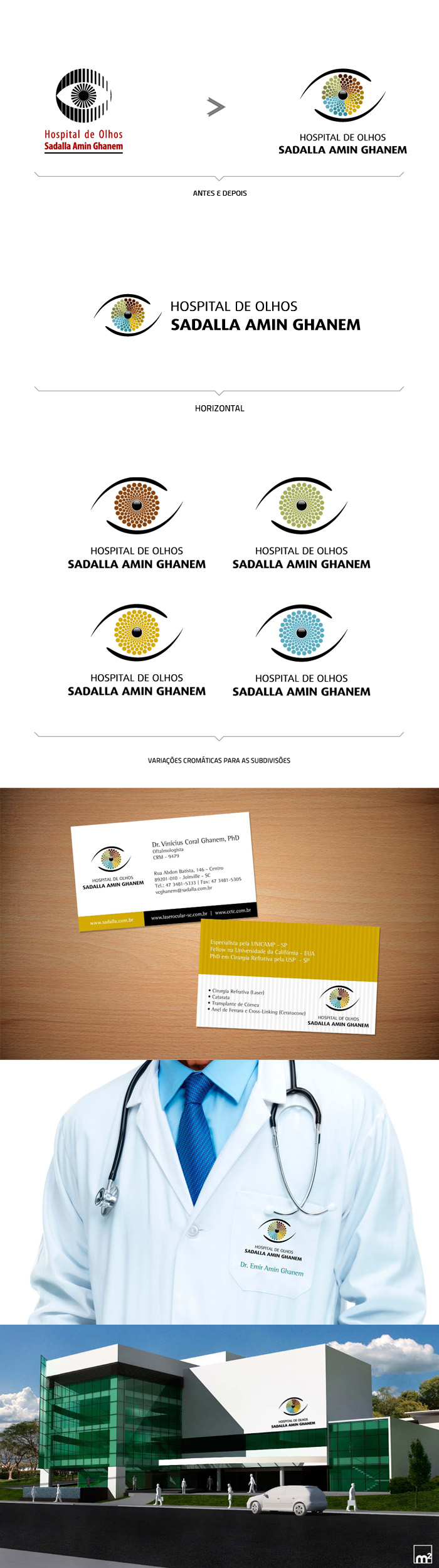 “Com inovação e conhecimento, o Hospital de Olhos Sadalla Amin Ghanem realiza transformações oferecendo uma vida com muito mais cores. Sendo assim, a nova identidade do Sadalla Amin Ghanem representa aquilo que o Hospital proporciona para as pessoas: transformação, equilíbrio com as cores da natureza e inovação.”