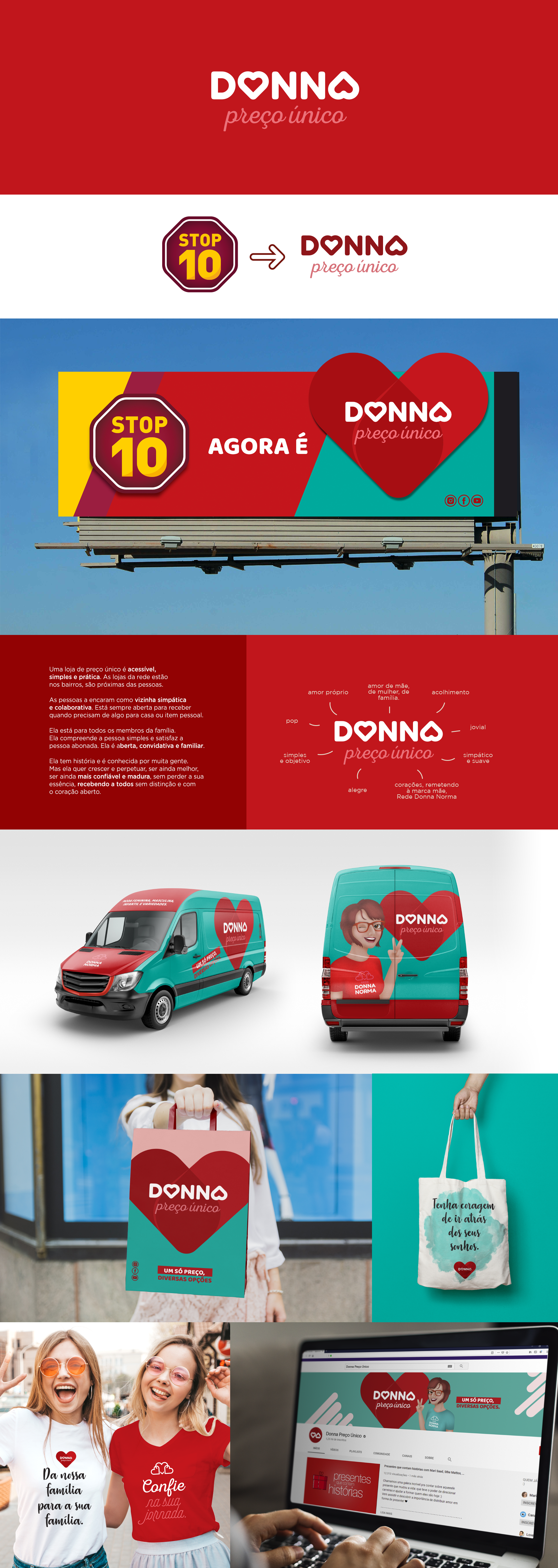 Projeto de branding para uma marca de lojas de preço único, desenvolvido em parceria com a agência Olga Ideias.