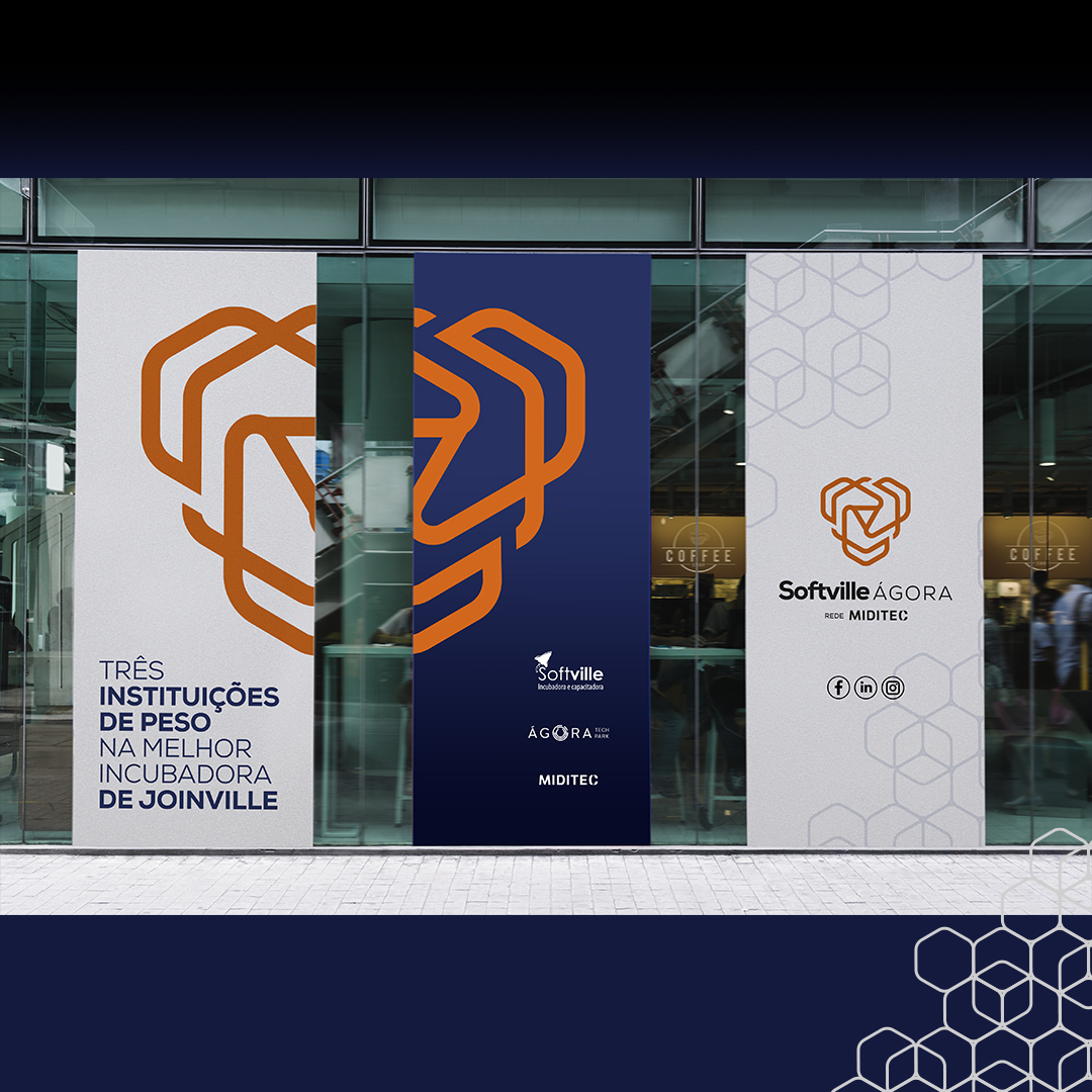 A marca da Softville Ágora Miditec foi um caso especial em minha carreira e gostaria de compartilhar com vocês. Unir três identidades em uma, criar uma nova identidade para essa união, sem perder o legado de cada uma, foi um exercício de criação e superação.