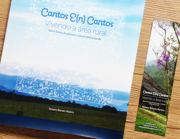 Projeto gráfico e diagramação do livro Cantos & Encantos. Vivendo a área rural . Roteiro Turístico, Arquitetônico e Cultural Cidade de Joinville. Autora: Rosana Barreto Martins. Projeto gráfico para Matriz Comunicação Fotos da própria autora. Livro com 167 páginas repleto de fotos, mapas e histórias sobre a região rural da cidade de Joinville.